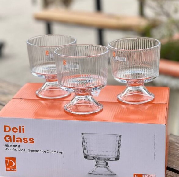 دسرخوری و بستنی خوری شیاردار پایه کوتاه دلی گلس DELI GLASS