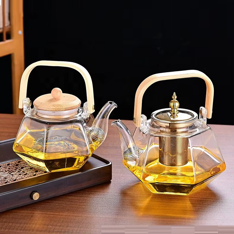 قوری پیرکس شش ضلعی دسته بامبو وارداتی